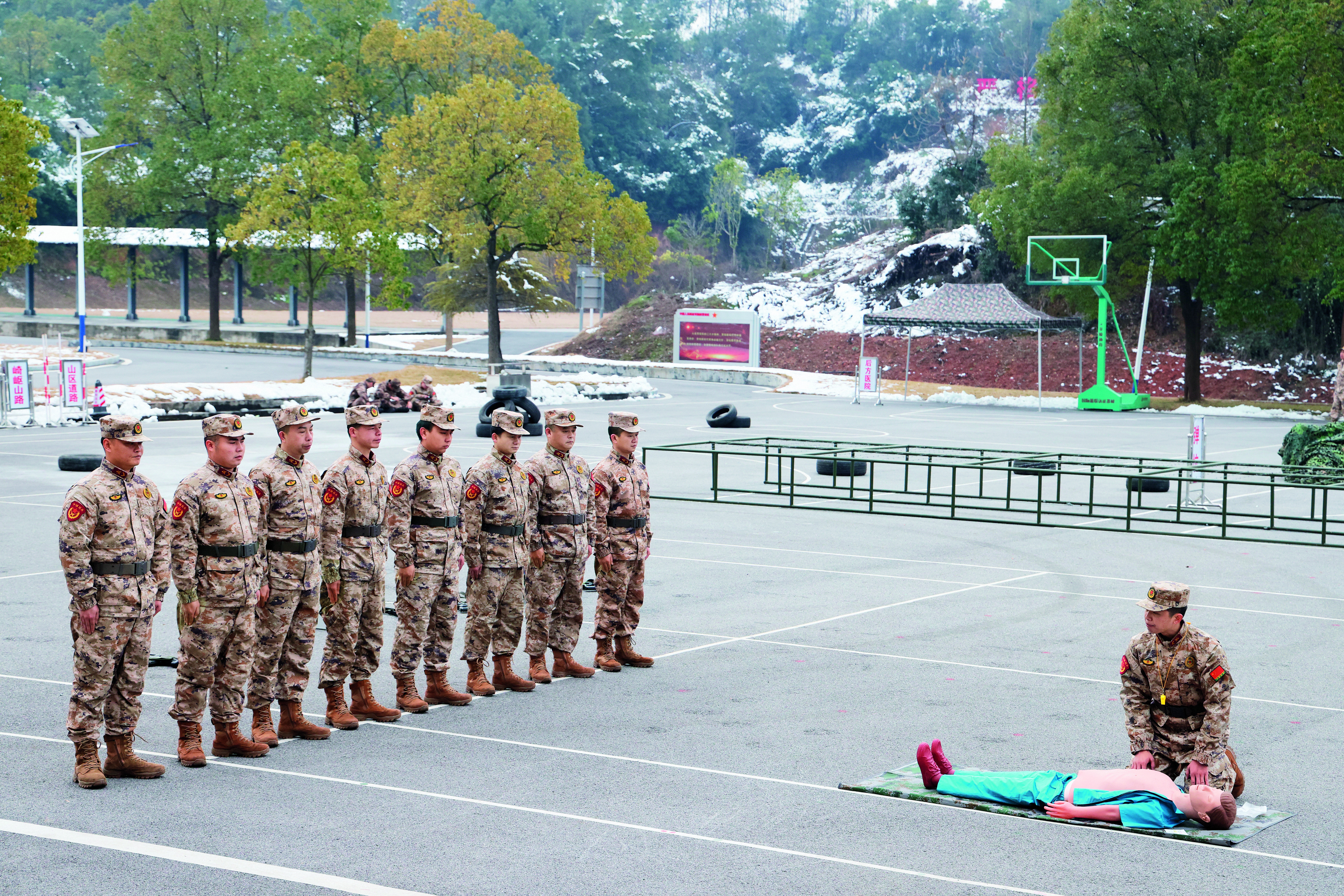 湖南省衡陽警備區(qū)組織民兵教練員開展醫(yī)療救護教學示范。(攝影/劉 嫻)