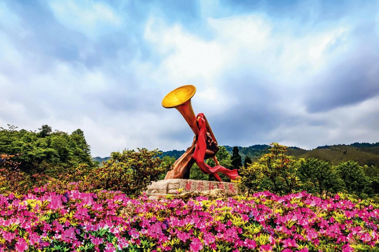 “向云端……”汽車在通往黃洋界的盤山路上疾行,記者情不自禁哼起《向云端》的旋律,沿途成片的映山紅怒放,一路蜿蜒曲折間薄霧繞山,隨著海拔升高給人一種奔向云端的愉悅感。曾經(jīng)血染的山脈如今以其壯麗之秀美告慰先輩:山河無恙、煙火尋常,這曾經(jīng)的動(dòng)蕩人間已然成為你們想要的模樣……
