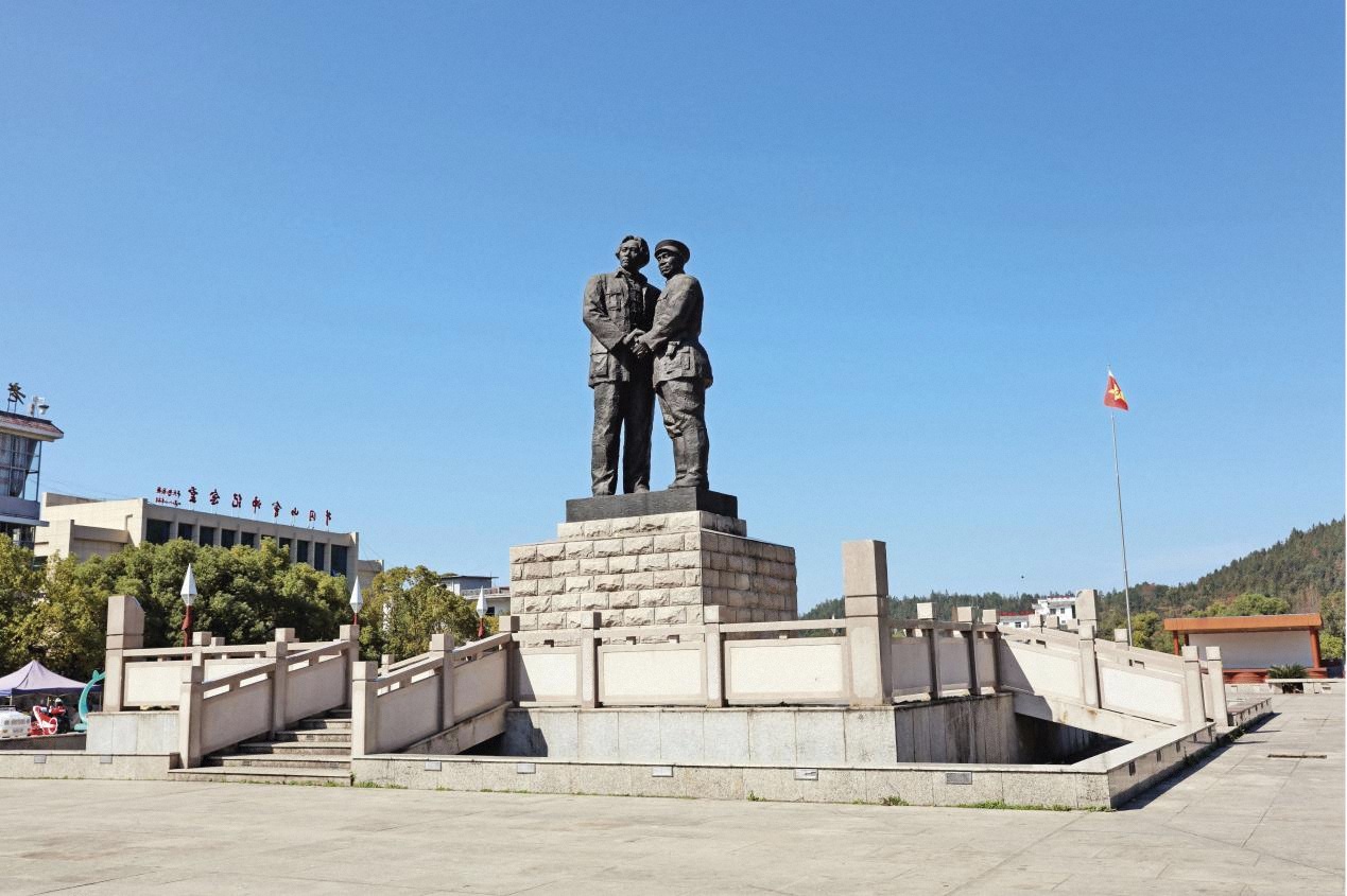 井岡山“朱毛”會(huì)師廣場雕塑。