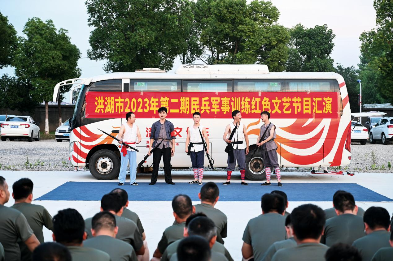 洪湖市人武部組織民兵進行紅色文藝節(jié)目匯演。(攝影/張國凱)