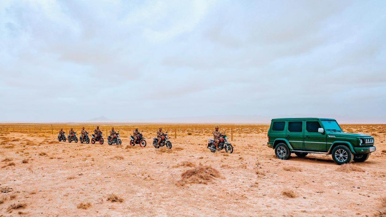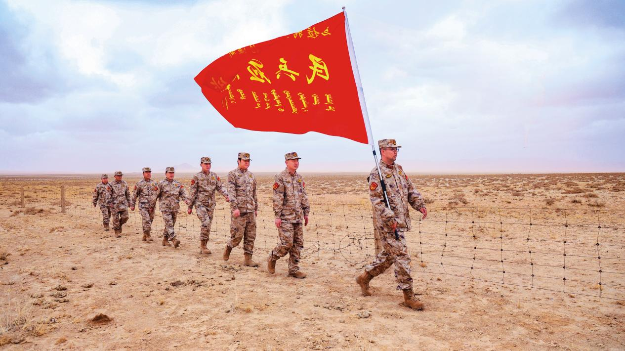 烏拉特后旗人武部組織民兵在邊境一線巡邏執(zhí)勤。(攝影/郭羽翔)