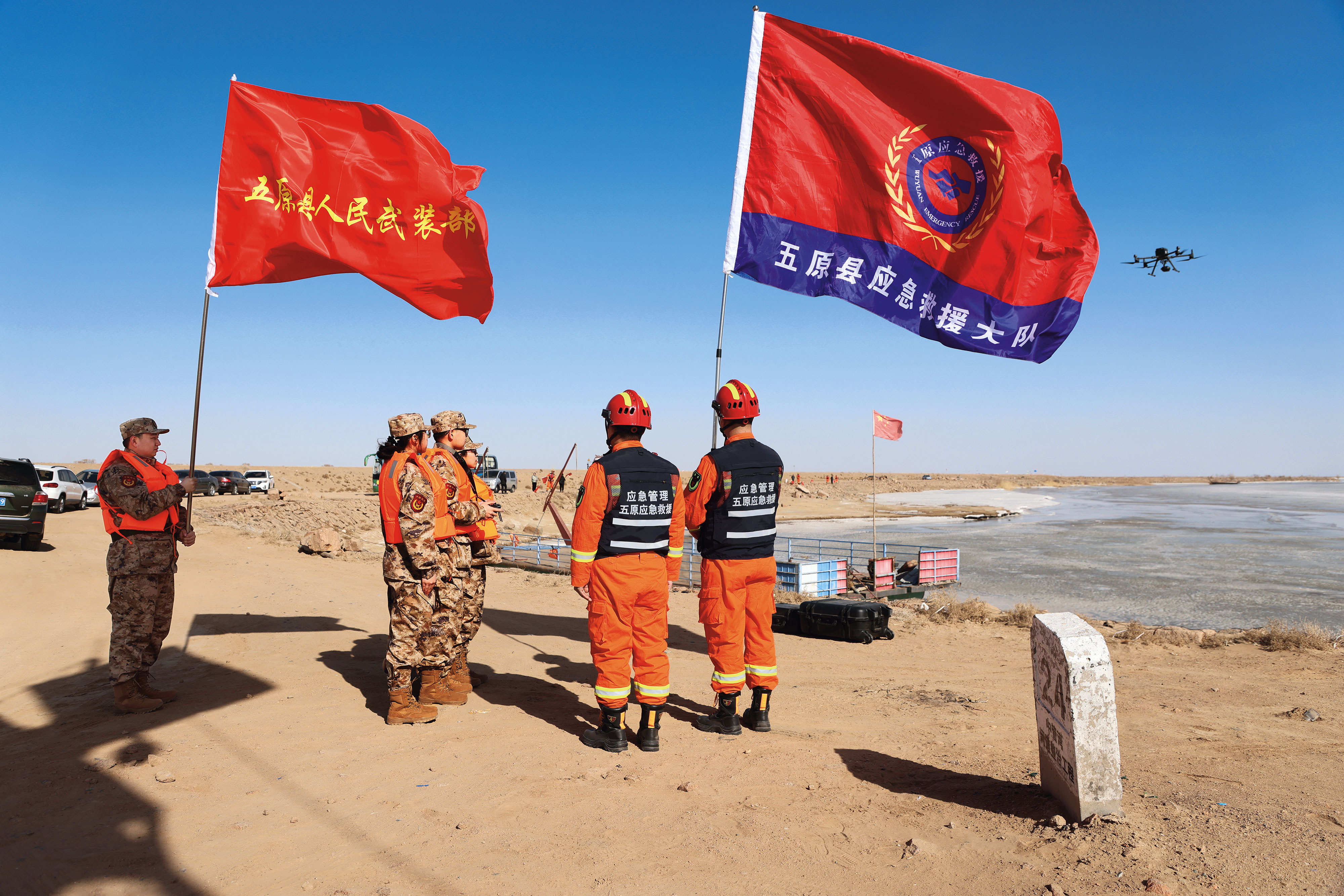 五原縣人武部組織民兵分隊(duì)與地方應(yīng)急救援力量開展聯(lián)合演訓(xùn)。(攝影/云東霞)
