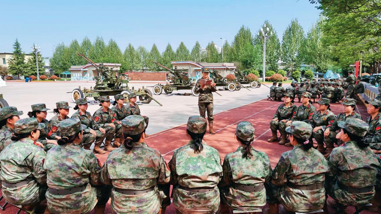 隴縣民兵女子防雹高炮連利用訓(xùn)練間隙組織學(xué)習(xí)教育。(攝影/馬文杰)