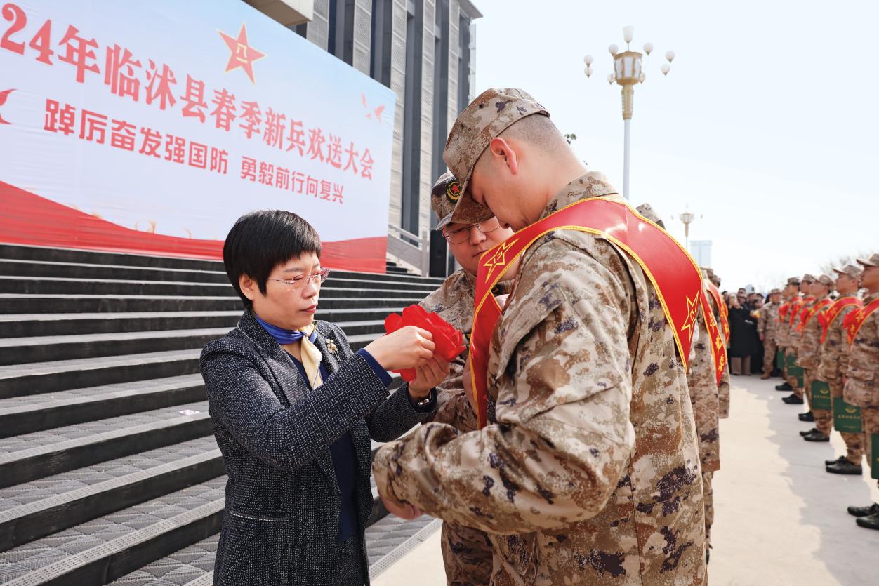 “向部隊(duì)輸送高素質(zhì)兵員是黨管武裝的主要工作之一,不是哪個人的權(quán)力,而是關(guān)系國家安危的政治任務(wù),是黨和人民賦予我們的沉甸甸責(zé)任?!迸R沭縣委書記張雷說,臨沭各級領(lǐng)導(dǎo)干部堅(jiān)決扛起黨管武裝工作的政治責(zé)任,歷屆縣委、縣政府將征兵工作提到愛黨、愛國、愛軍的高度去認(rèn)識、去實(shí)踐。“縣里有個不成文的、但也是雷打不動的傳統(tǒng):全縣征兵工作會議、役前教育動員大會,縣委書記必參加;新兵歡送會等會議和活動,縣長必主持。”臨沭縣人武部孫軍濤說,征兵工作在臨沭歷來是“一把手”工程,全縣建立了黨委負(fù)總責(zé)、書記為第一責(zé)任人的縣、鎮(zhèn)、村“三級書記”征兵責(zé)任機(jī)制,各級黨委政府和相關(guān)部門“一把手”必須參加相關(guān)會議活動,涉及的相關(guān)部門具體工作均由部門“一把手”抓好落實(shí),從制度層面推動組織領(lǐng)導(dǎo)上按最高規(guī)格辦、責(zé)任落實(shí)上按最嚴(yán)標(biāo)準(zhǔn)卡。