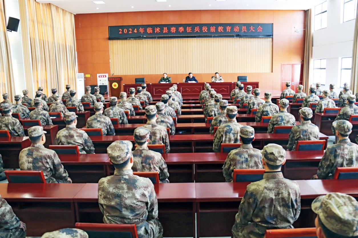 臨沭縣舉行2024年上半年預(yù)定新兵役前教育動員大會。(攝影/李高升)