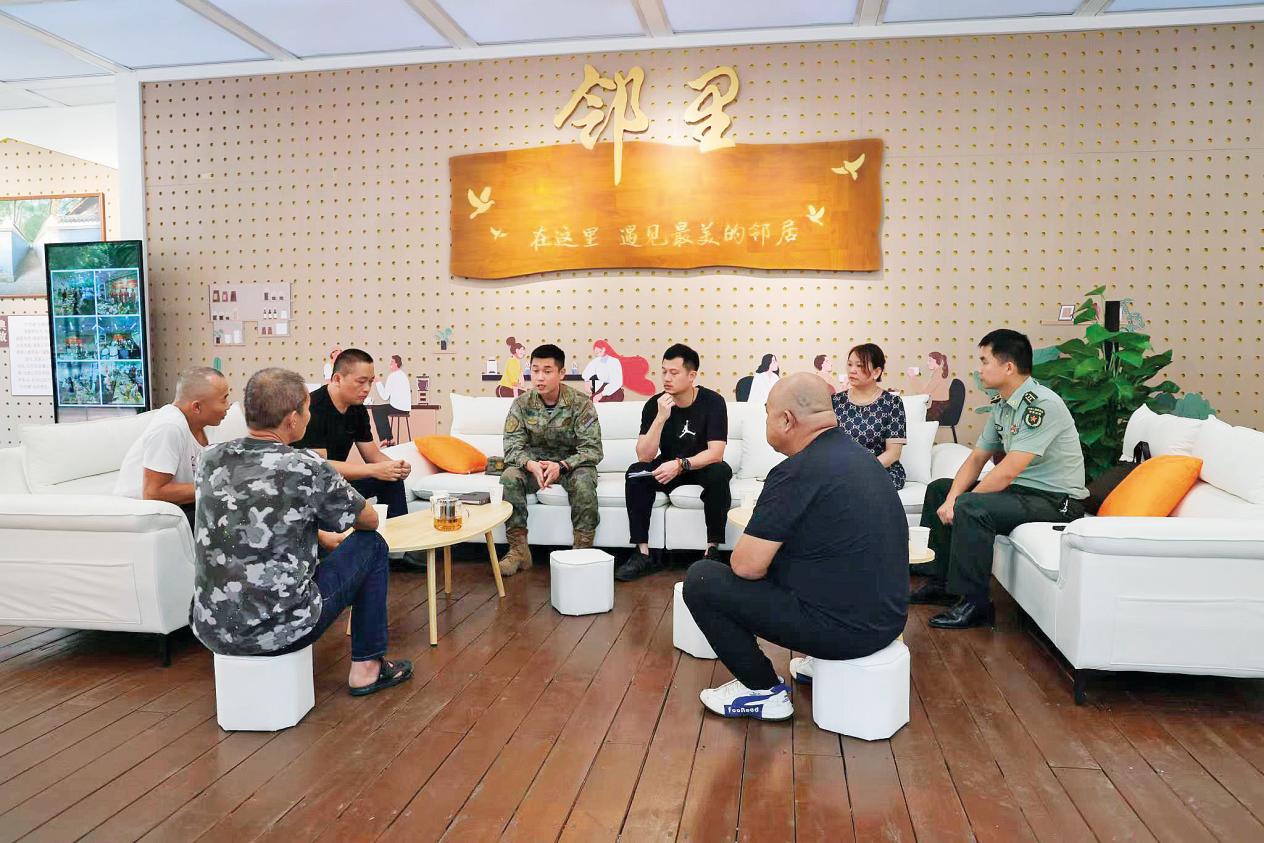 海南軍地協(xié)同法律服務(wù)中心工作人員在社區(qū)現(xiàn)場調(diào)解涉軍糾紛。