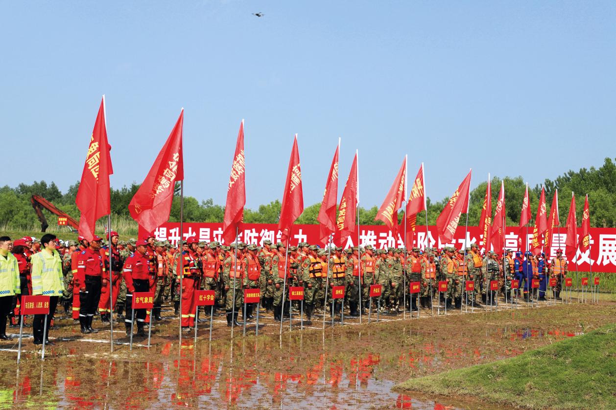 鎮(zhèn)江市軍地聯(lián)合組織防汛救災(zāi)綜合演練。(攝影/呂程揚(yáng))