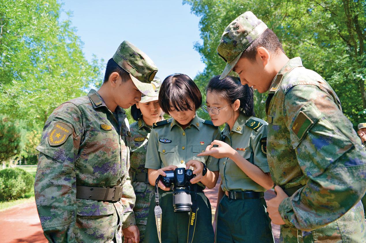 寧夏軍區(qū)基層文藝骨干交流攝影技巧。(攝影/許曉輝)