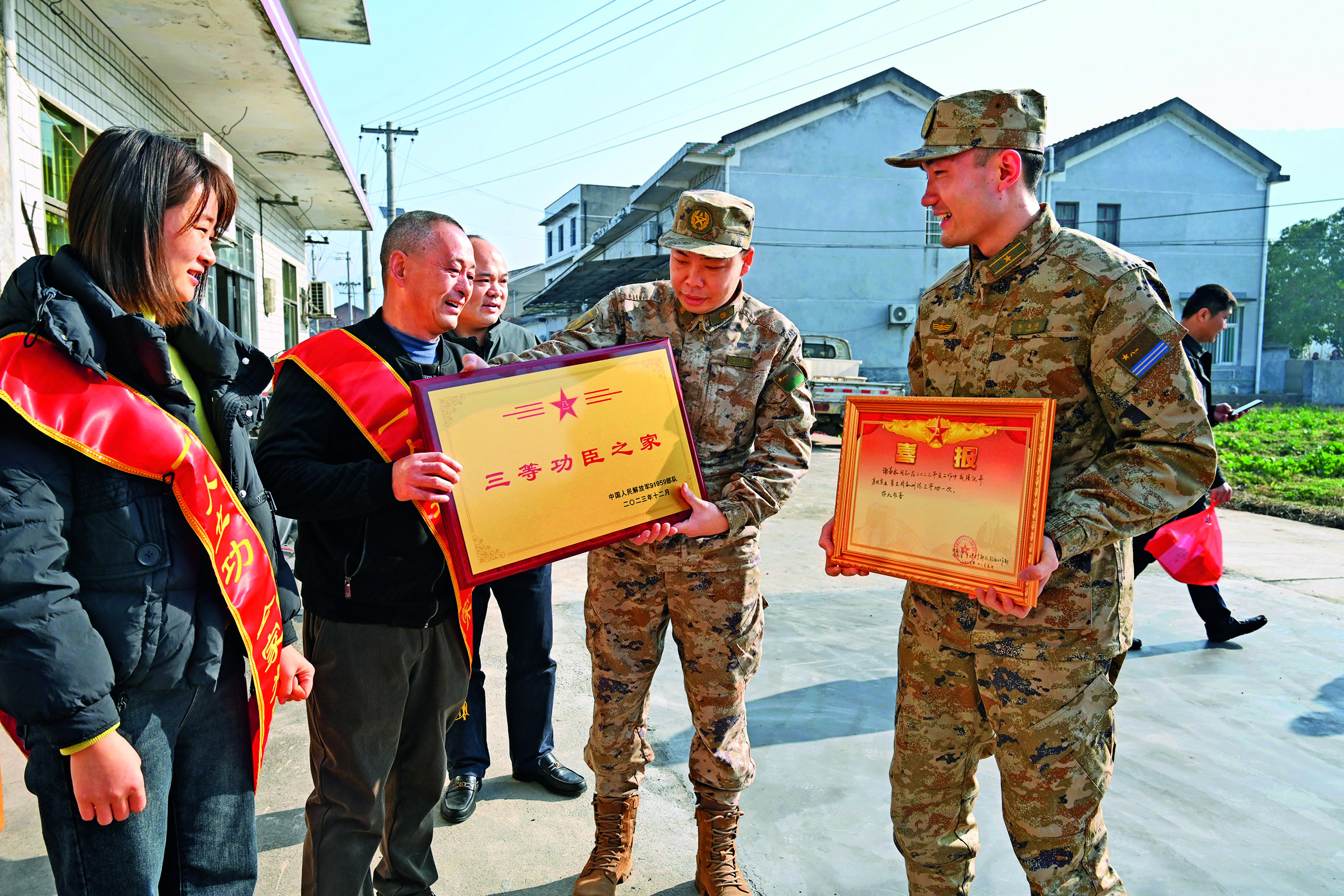 醴陵市軍地聯(lián)合開展為立功軍人家庭送喜報活動。