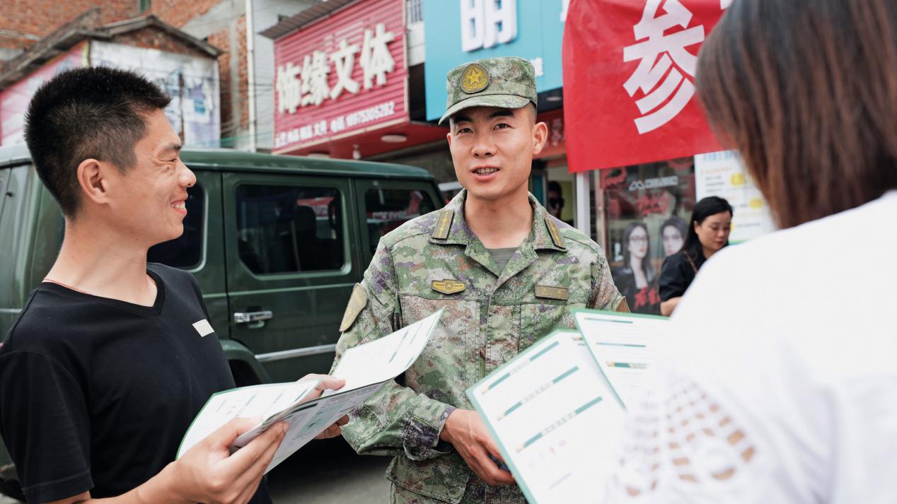“期待家鄉(xiāng)熱血青年,一同奔赴強(qiáng)國強(qiáng)軍的星辰大海,不負(fù)韶華、砥礪奮進(jìn),在火熱軍營百煉成鋼,在強(qiáng)軍征途書寫華章……”6月上旬,一則現(xiàn)役軍人代言的征兵宣傳廣告在湖南省醴陵市“火”了,視頻中的征兵代言人是新疆軍區(qū)某部“95后”一等功臣林祥。林祥從軍10年,先后榮立一等功、二等功各1次,成為醴陵市征兵宣傳功臣矩陣中的一員。