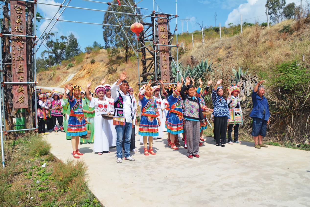 賓川縣喬甸鎮(zhèn)新莊村村民自編自演紅色情景劇《送別》場景。(攝影/蒲國宏)
