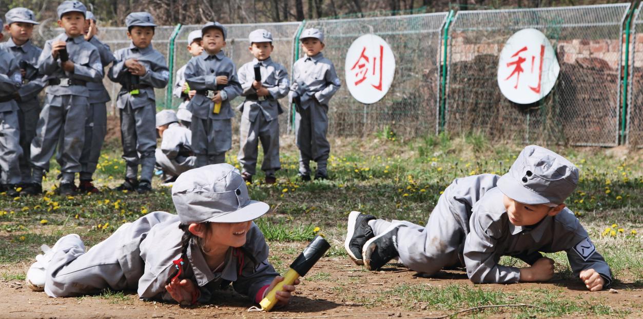 武鄉(xiāng)縣機關(guān)幼兒園組織小朋友開展軍事訓(xùn)練體驗活動。