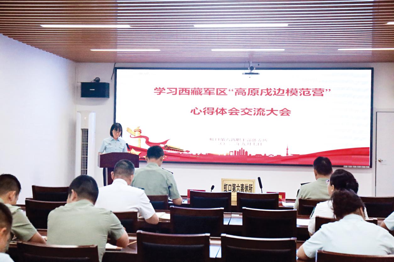 與此同時(shí),虹口第六離職干部休養(yǎng)所以開展“新時(shí)代奮斗觀”大討論為抓手,創(chuàng)新組織向“高原戍邊模范營(yíng)”學(xué)習(xí)活動(dòng),先后通過典型激勵(lì)學(xué)、討論交流學(xué)、融入實(shí)踐學(xué)等多種形式,架起兩地官兵溝通交流的精神橋梁,同吸“信仰之氧”、共筑強(qiáng)軍之魂。