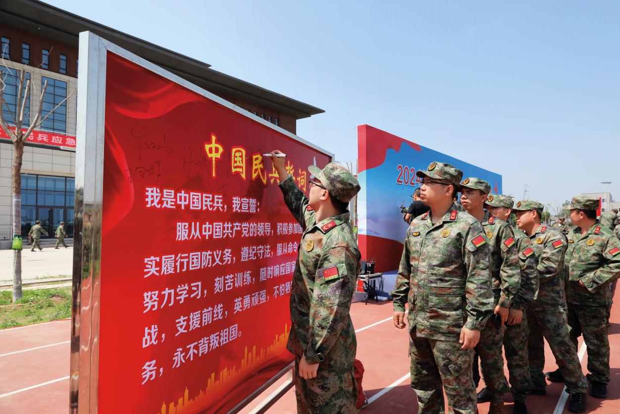 衡水軍分區(qū)組織民兵骨干集體簽名表決心。(攝影/郭俊峰)