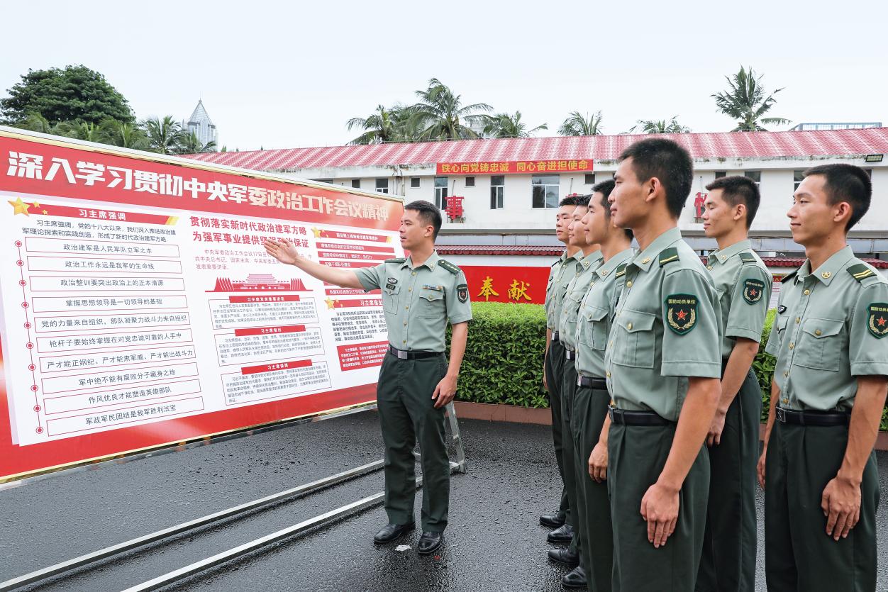 海南省軍區(qū)直屬單位組織官兵及時學習軍委政治工作會議精神。(攝影/柴 軍)