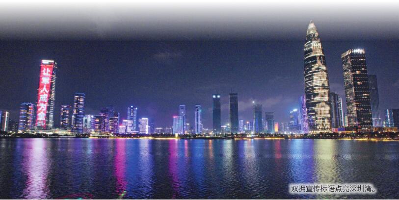 雙擁宣傳標(biāo)語點(diǎn)亮深圳灣。