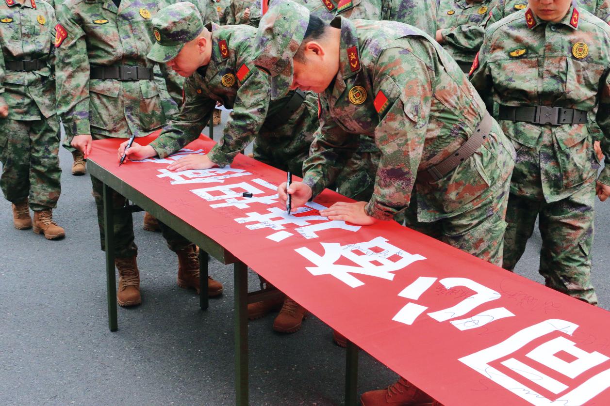 延吉市人武部組織民兵進(jìn)行“奮斗有我”主題簽名儀式。(攝影/李紹尉)