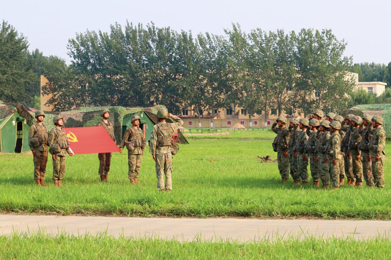 天津警備區(qū)直屬單位在訓(xùn)練間隙組織黨員重溫入黨誓詞。