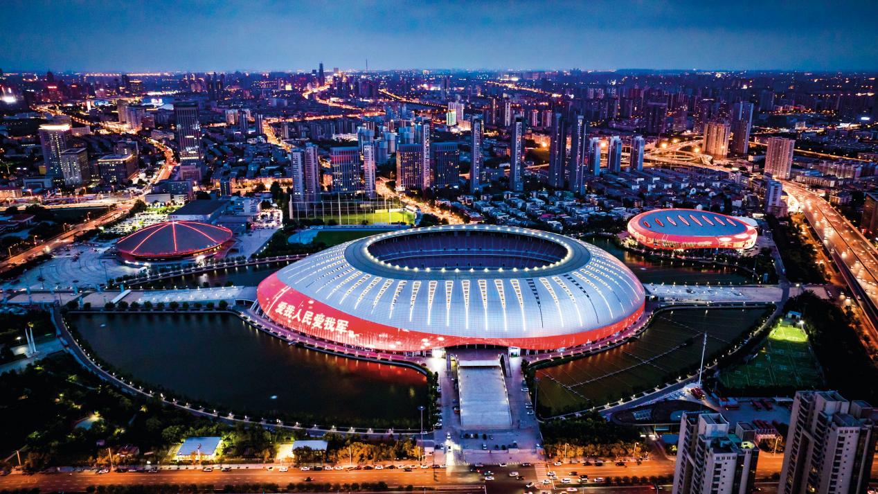 天津市南開區(qū)利用地標(biāo)建筑外立面燈光秀開展征兵宣傳。(攝影/王 鵬)