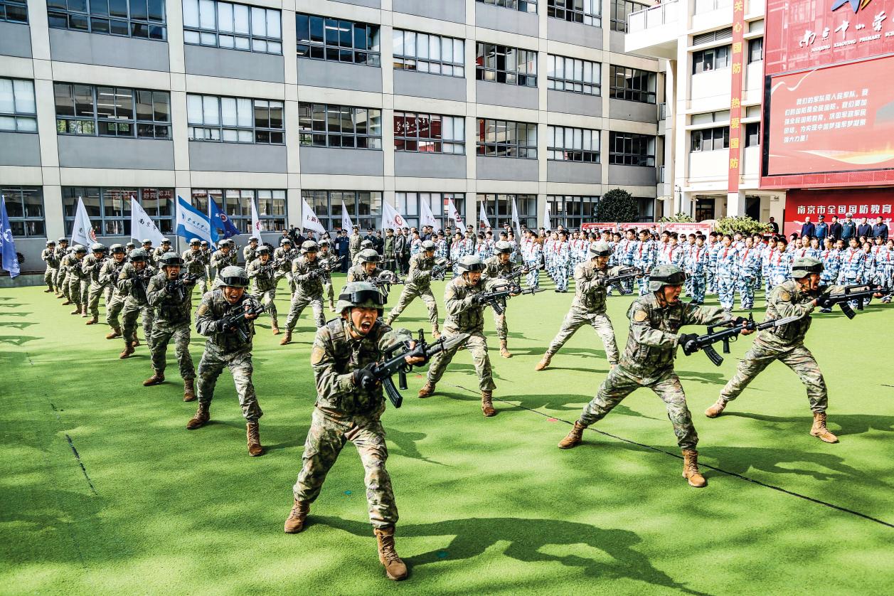 南京市邀請駐軍部隊官兵為青少年學生進行刺殺訓練展示。(攝影/孫 劍)