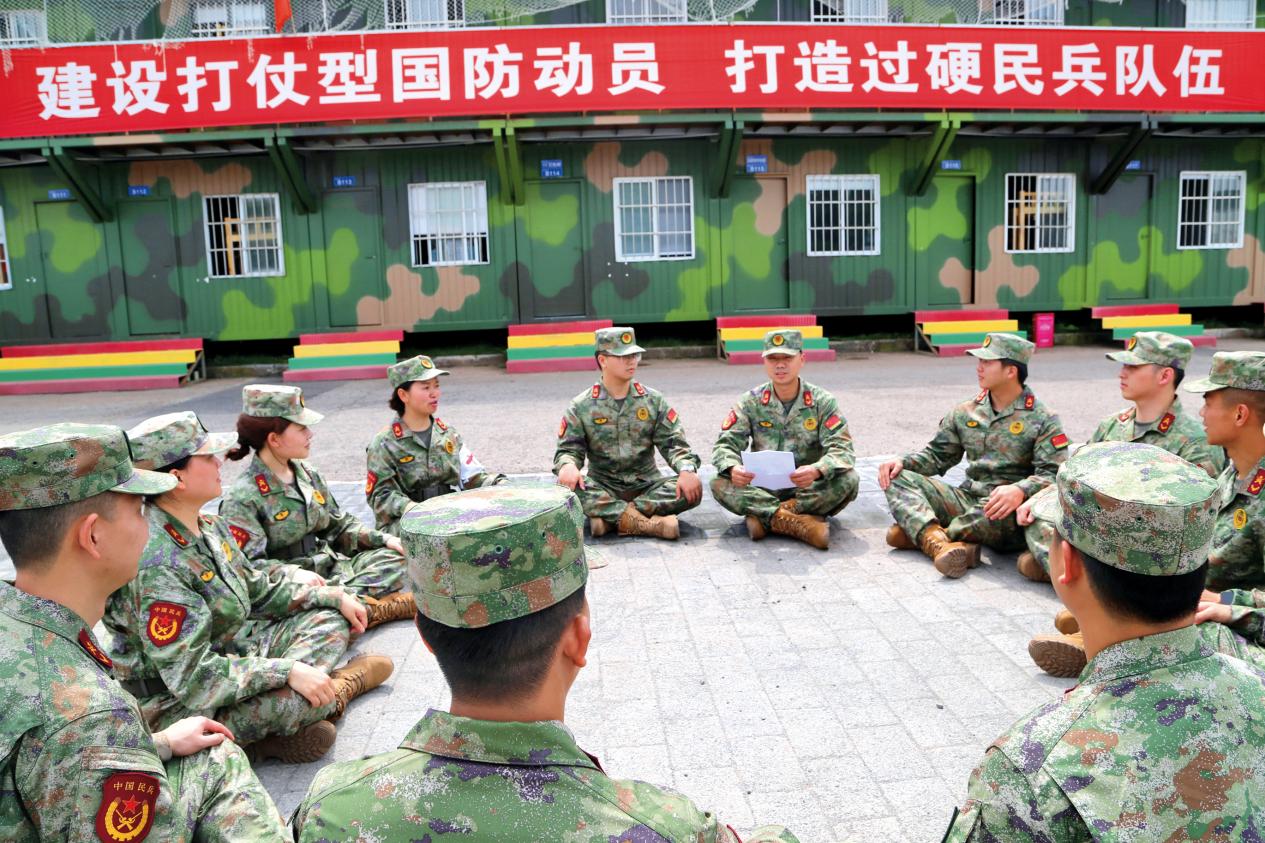 渝北區(qū)人武部利用訓(xùn)練間隙組織民兵分隊(duì)進(jìn)行學(xué)習(xí)討論。