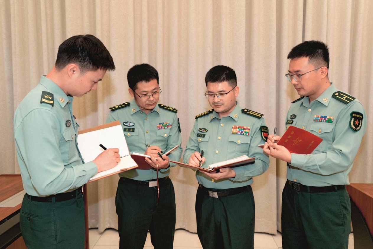 走一條別人沒走過的路,往往要付出更多努力。2023年,章閱兵負責研究制訂新質民兵組訓方法。無大綱、無教案、如何訓,一時成為制約新質民兵訓練的瓶頸問題。為了解新質民兵的特點和需求,他帶領組訓骨干深入12個縣區(qū)調研,與院校專家和民兵骨干面對面交流、收集第一手資料,及時借鑒成熟做法。在無數個不眠之夜,他埋頭于資料堆翻閱國內外相關訓練案例,主動請教軍事訓練領域的專家,對比研究典型作戰(zhàn)場景尋找可借鑒的經驗。那段時間,厚厚的文件和書籍在他的案頭摞成了堆,戰(zhàn)友林樹洲說:“大家都笑他的辦公桌成了一個雜貨鋪?!?/p>