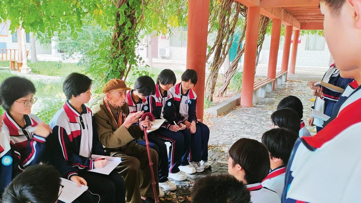 牛全富(左二)經(jīng)常走進(jìn)駐地中小學(xué)校為學(xué)生講述紅色故事。
