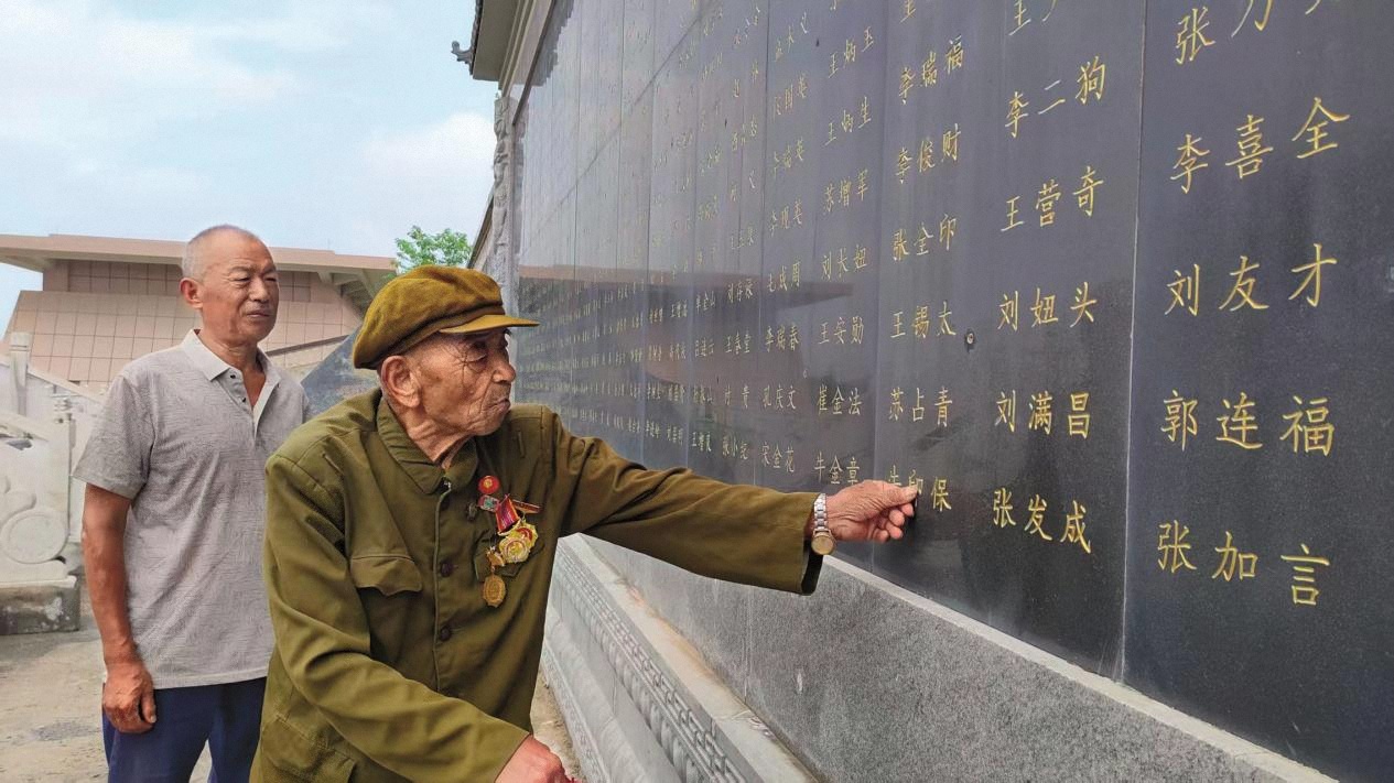牛全富(右一)經(jīng)常在家人陪同下到衛(wèi)輝市烈士陵園緬懷已故戰(zhàn)友。