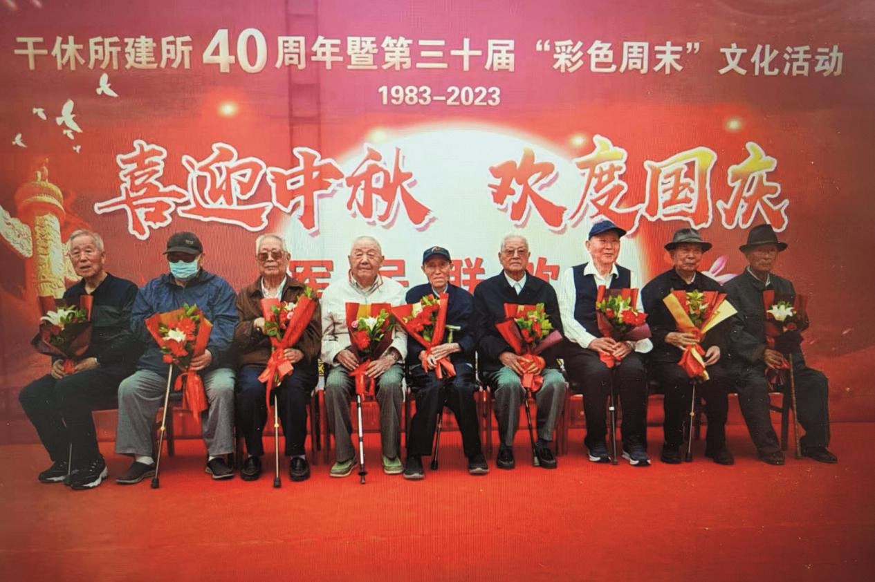 閆可風(左五)參加所在干休所建所40周年暨第三十屆“彩色周末”文化活動。