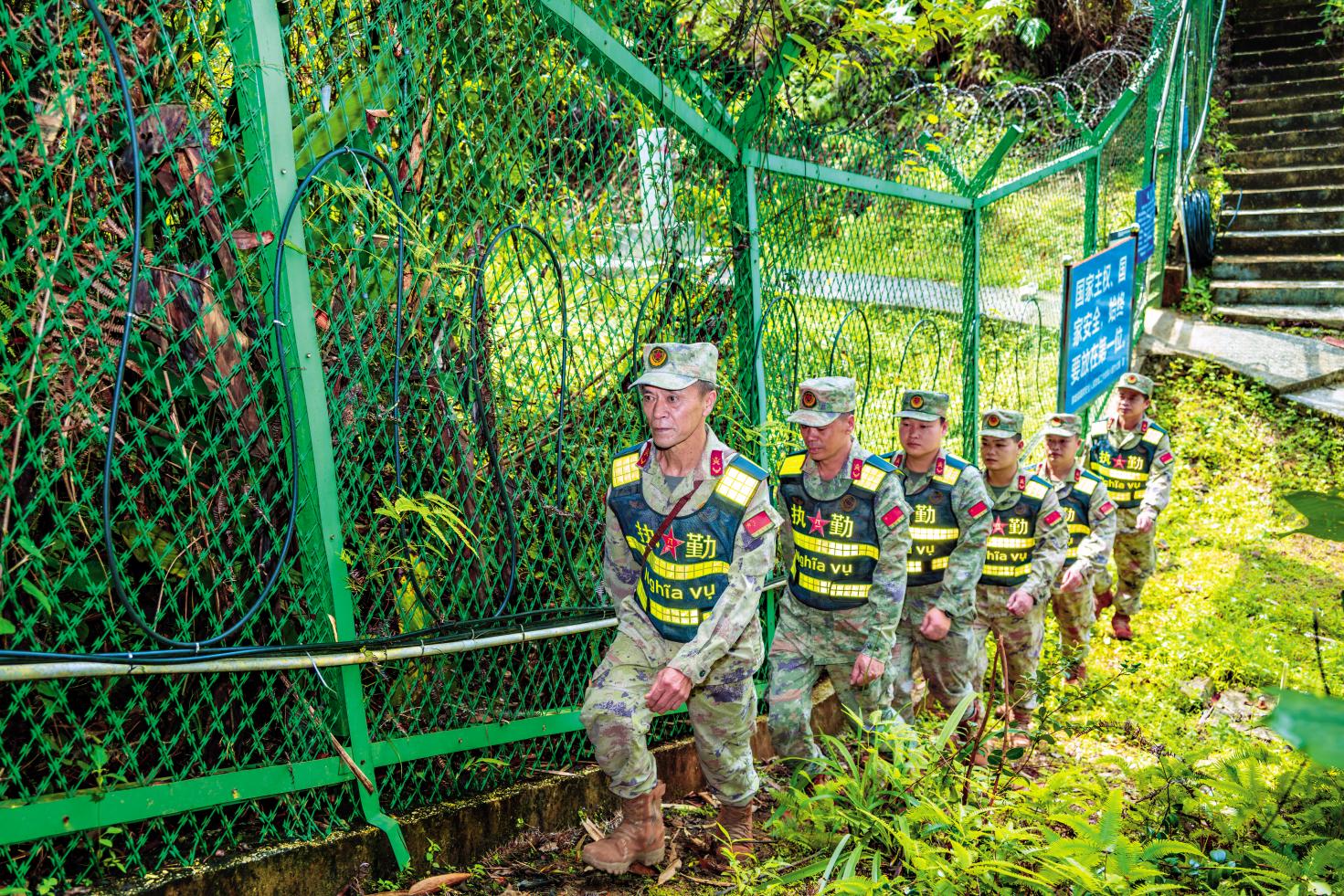 凌尚前帶領(lǐng)那坡縣天池國(guó)防民兵哨所民兵巡邊執(zhí)勤。