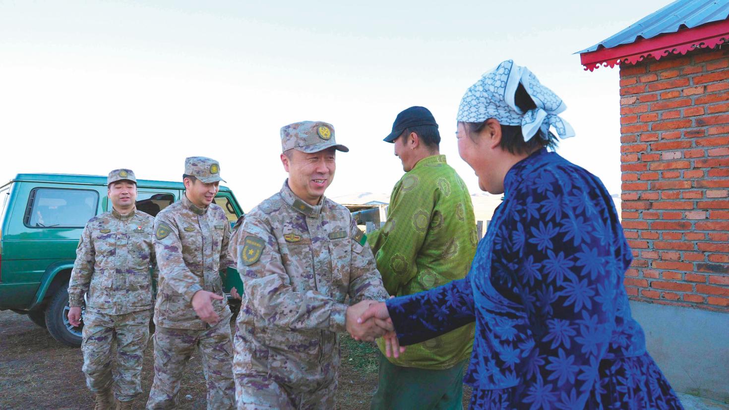李鳳飛與呼倫貝爾軍分區(qū)機(jī)關(guān)人員一起到結(jié)對(duì)幫扶戶家中走訪。