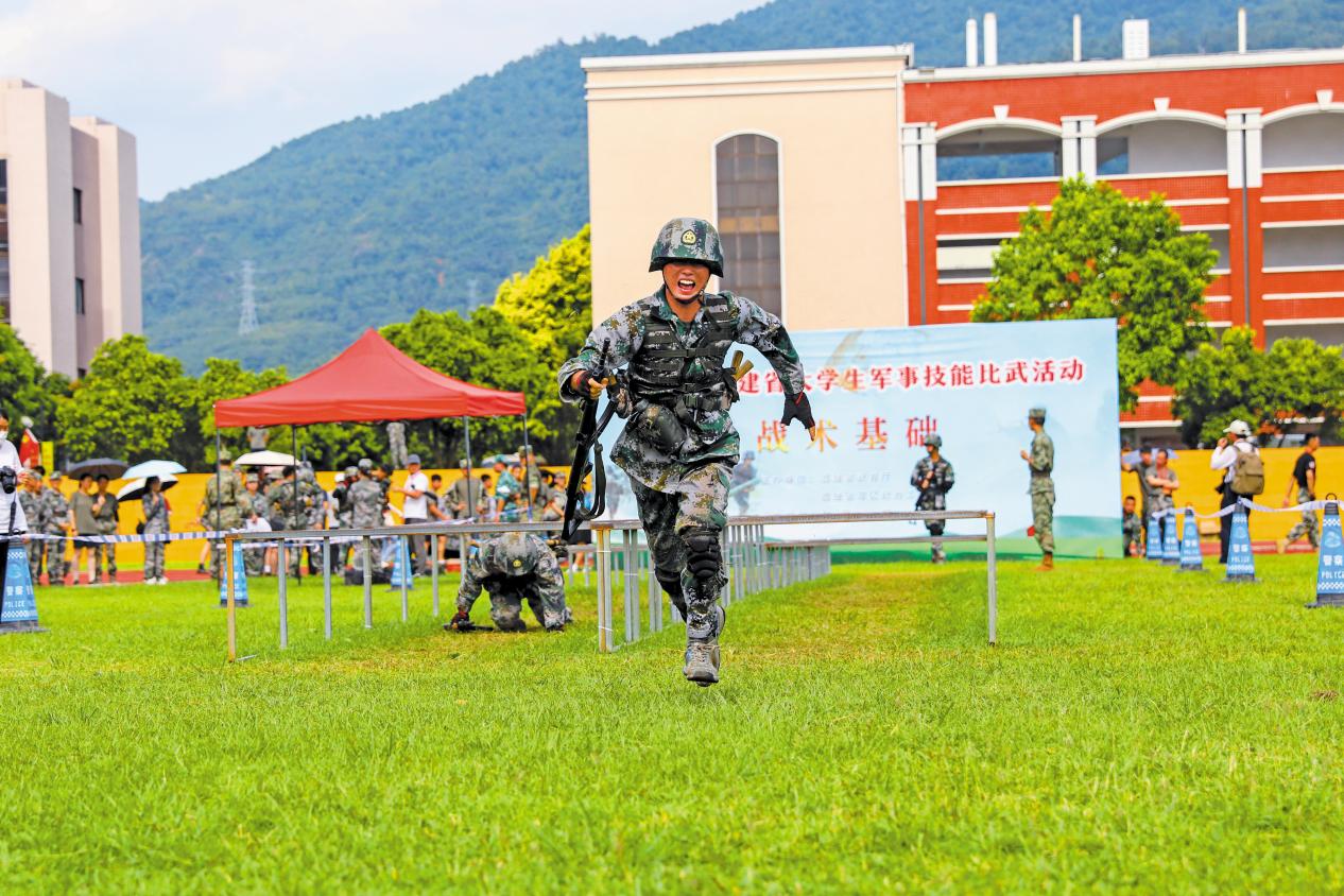 福建省軍地常態(tài)化組織大學(xué)生軍事技能比武活動。