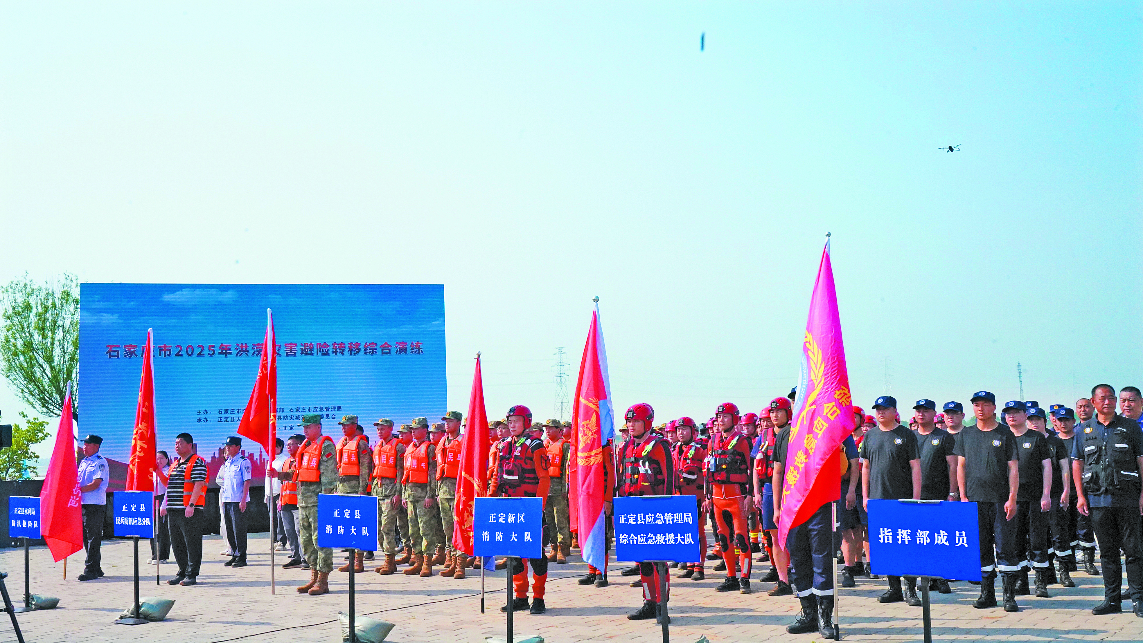 正定縣軍地組織民兵應(yīng)急分隊(duì)與其他應(yīng)急力量聯(lián)合開(kāi)展抗洪搶險(xiǎn)綜合演練。(攝影/王雙豹)