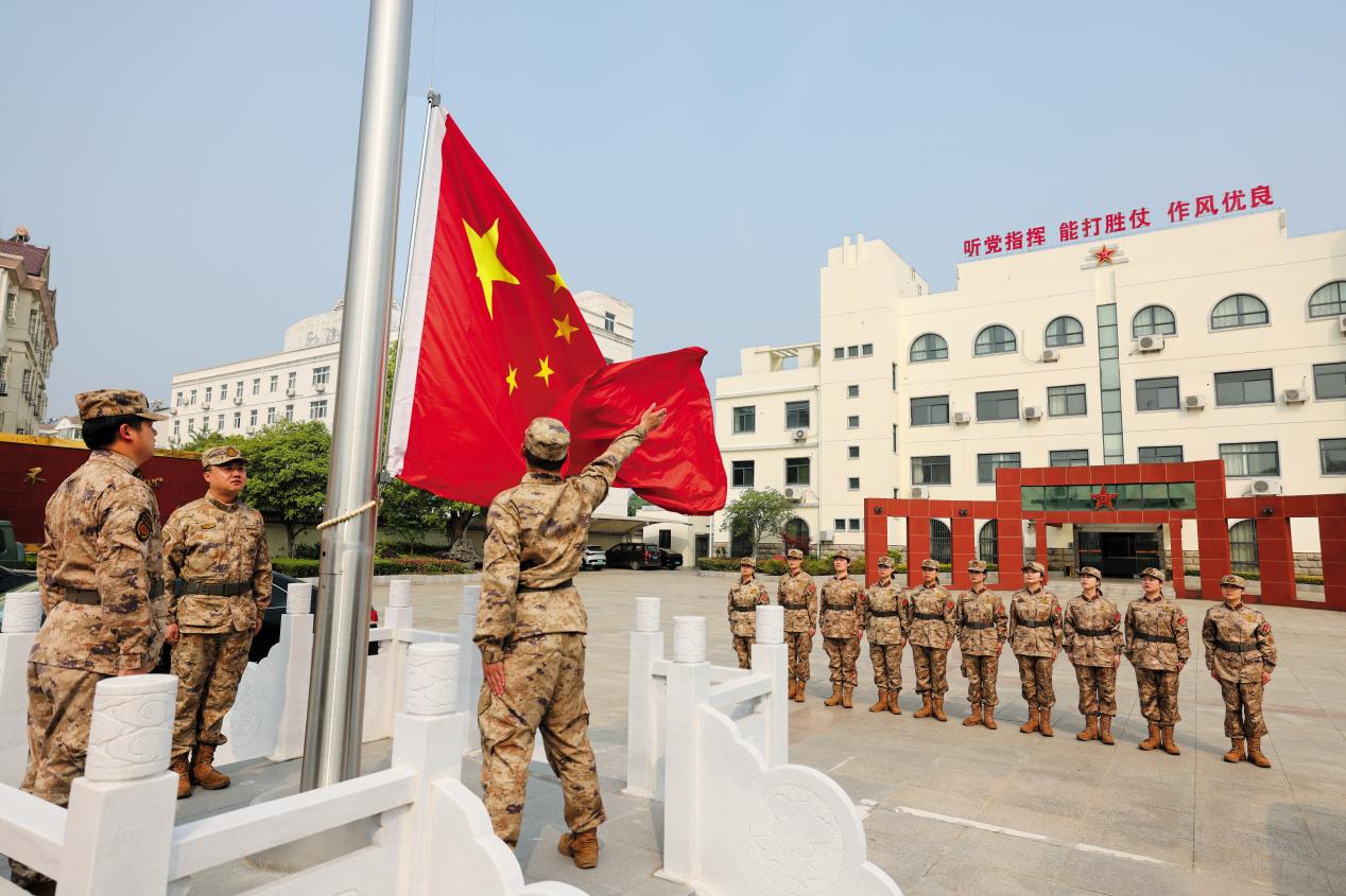 十女民兵班正在舉行升國旗儀式。(攝影/謝婷婷)