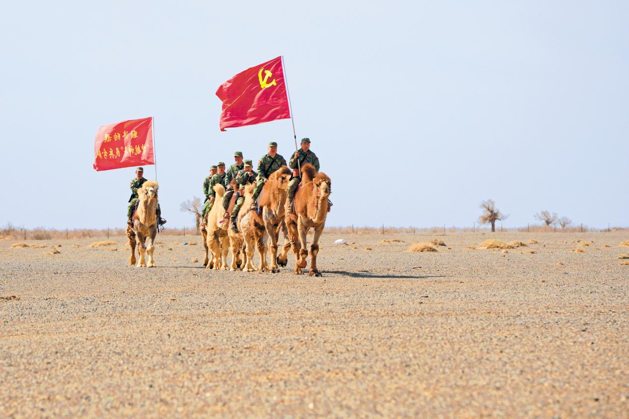護(hù)航神舟民兵分隊(duì)駝兵隊(duì)員正在執(zhí)行巡邏任務(wù)。