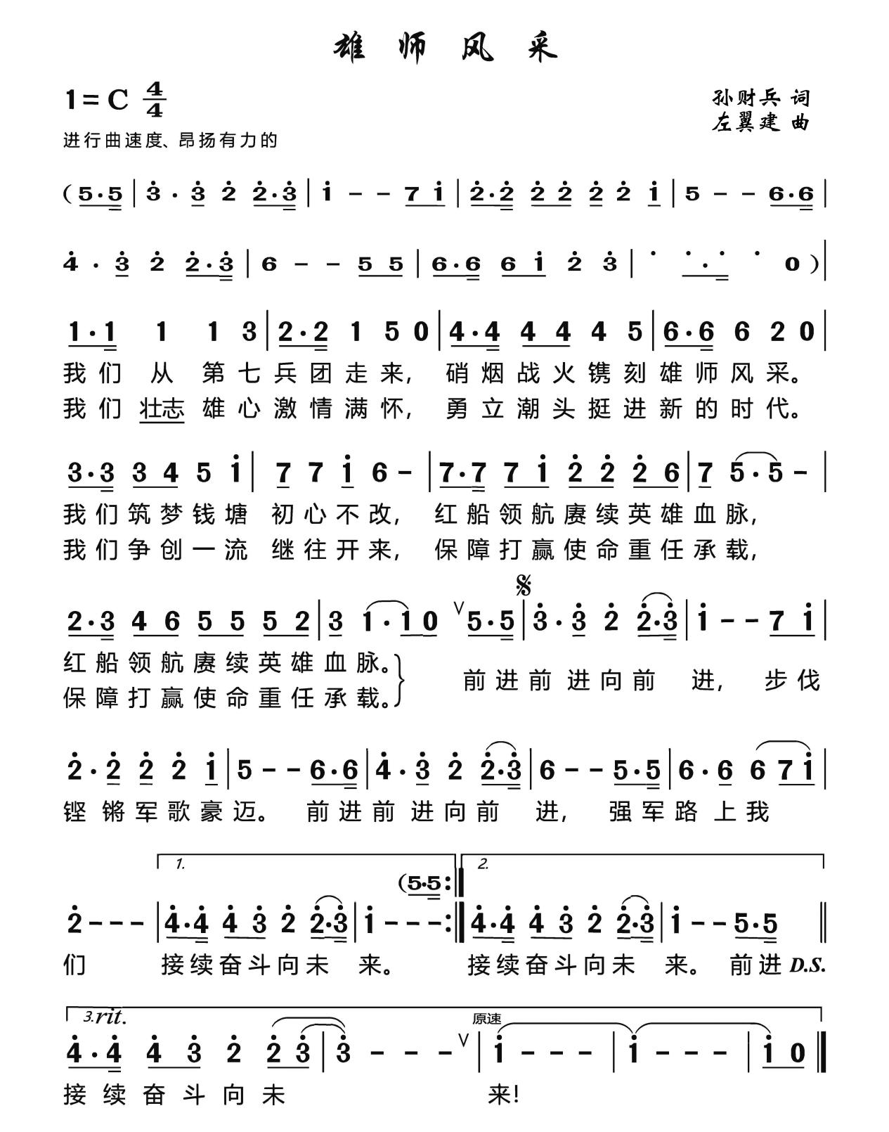 由浙江省軍區(qū)機關(guān)人員創(chuàng)作的歌曲《雄師風采》。