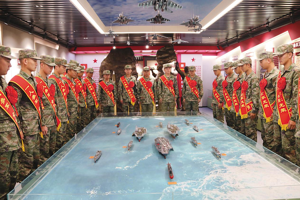 曹縣軍地組織即將入伍的新兵走進(jìn)當(dāng)?shù)丶t色場(chǎng)館參觀見學(xué)。(攝影/張?jiān)鰰希?/span>