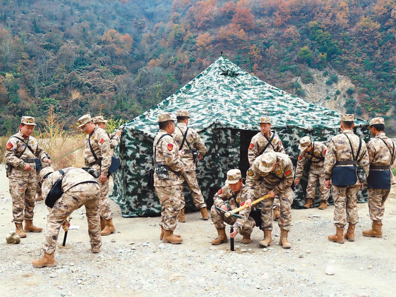 陳紅軍民兵連組織民兵進(jìn)行野外帳篷搭設(shè)訓(xùn)練。(攝影/毛 剛)