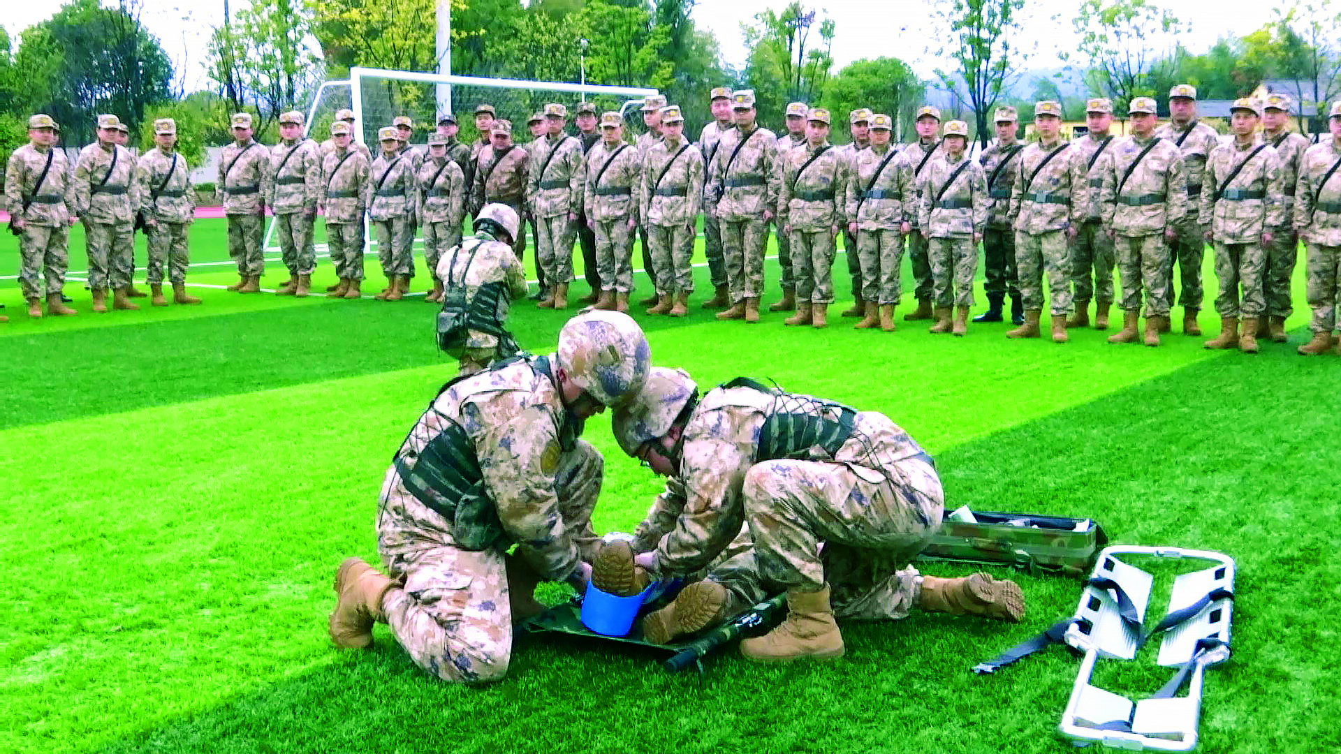 江西省軍區(qū)組織文職人員進(jìn)行戰(zhàn)場救護(hù)課目訓(xùn)練。(攝影/顧 浩)