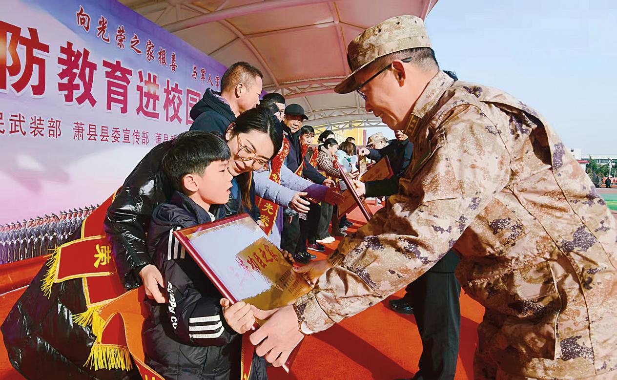 “國防教育活動要想方設法吸引青少年?!卑不帐〖t色文化博大厚重,革命遺址遺跡、紀念館、展覽館遍布各地。2021年,安徽省人大常委會表決通過了《安徽省紅色資源保護和傳承條例》,明確要求學校要把紅色資源傳承納入日常教學實踐,設計符合青少年認知特點的教學活動,定期組織學生參觀舊址遺址、紀念設施和場所等,及時開展革命傳統(tǒng)教育、愛國主義教育。目前,該省已建成上百所全國國防教育示范學校,同時在高校中軍事類學生社團也如雨后春筍般蓬勃發(fā)展,各類學校常態(tài)開展集軍事技能訓練、紅色主題教育、校園國防實踐于一體的國防教育活動。巢湖學院結合?!皣彀唷弊o旗手選拔、國防知識挑戰(zhàn)賽等活動,定期組織軍事技能訓練和國防知識競答;潛山野寨中學和國防科技大學合作開辦“國防科技育英班”,探索科技強軍人才培養(yǎng)新路徑;革命老區(qū)金寨縣開發(fā)的“將星璀璨”觀摩示范課,以開國將軍故事為主線,引導中小學生探尋金寨紅色歷史……形式多樣的國防教育在學生們心中播下了愛國愛軍的“紅色種子”。