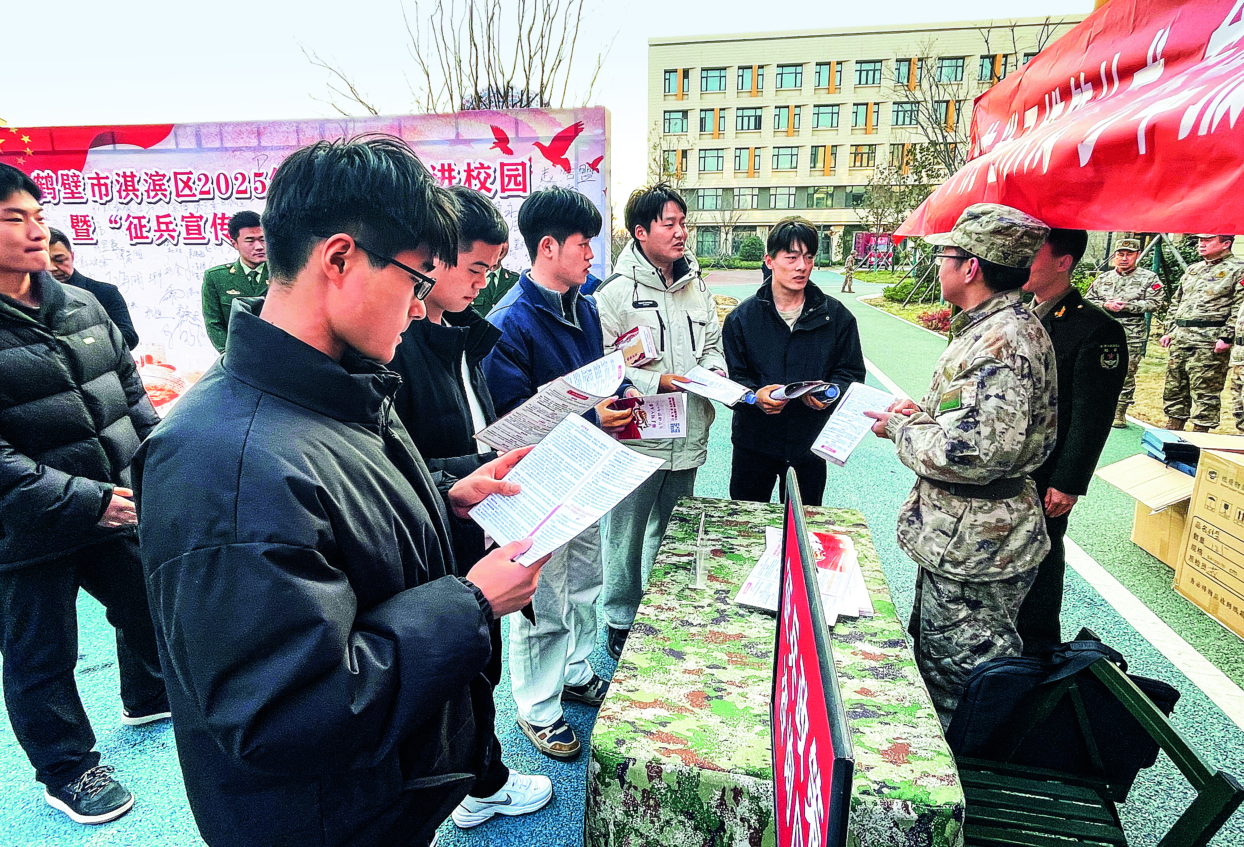 2.鶴壁市淇濱區(qū)征兵工作人員走進校園開展征兵宣傳活動。