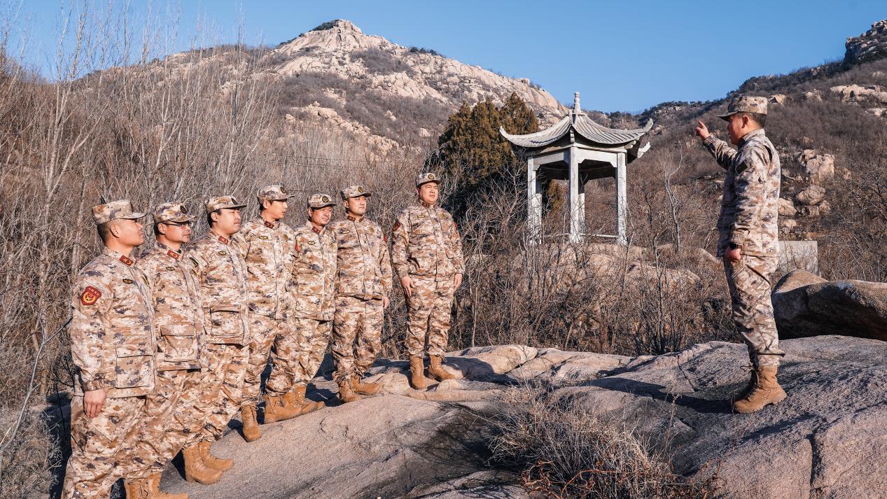 岱岳區(qū)人武部組織民兵在“徂徠紅嫂”于秀泉紀念亭前開展教育活動。