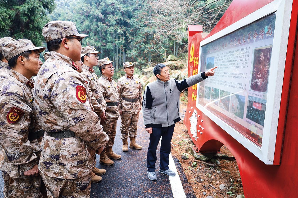 黃龍山民兵排民兵到駐地學(xué)校宣講“高山紅哨”事跡。(攝影/吳鵬華)