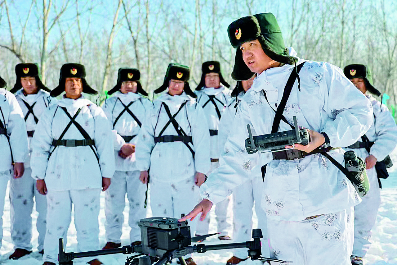 黑龍江省寶清縣人武部在嚴寒條件下組織民兵無人機專業(yè)分隊開展技能訓練。(攝影/王冠杰)