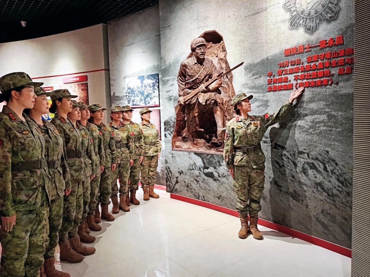 塔山女子民兵班到塔山阻擊戰(zhàn)紀(jì)念館現(xiàn)地教學(xué)。(攝影/陳 碩)