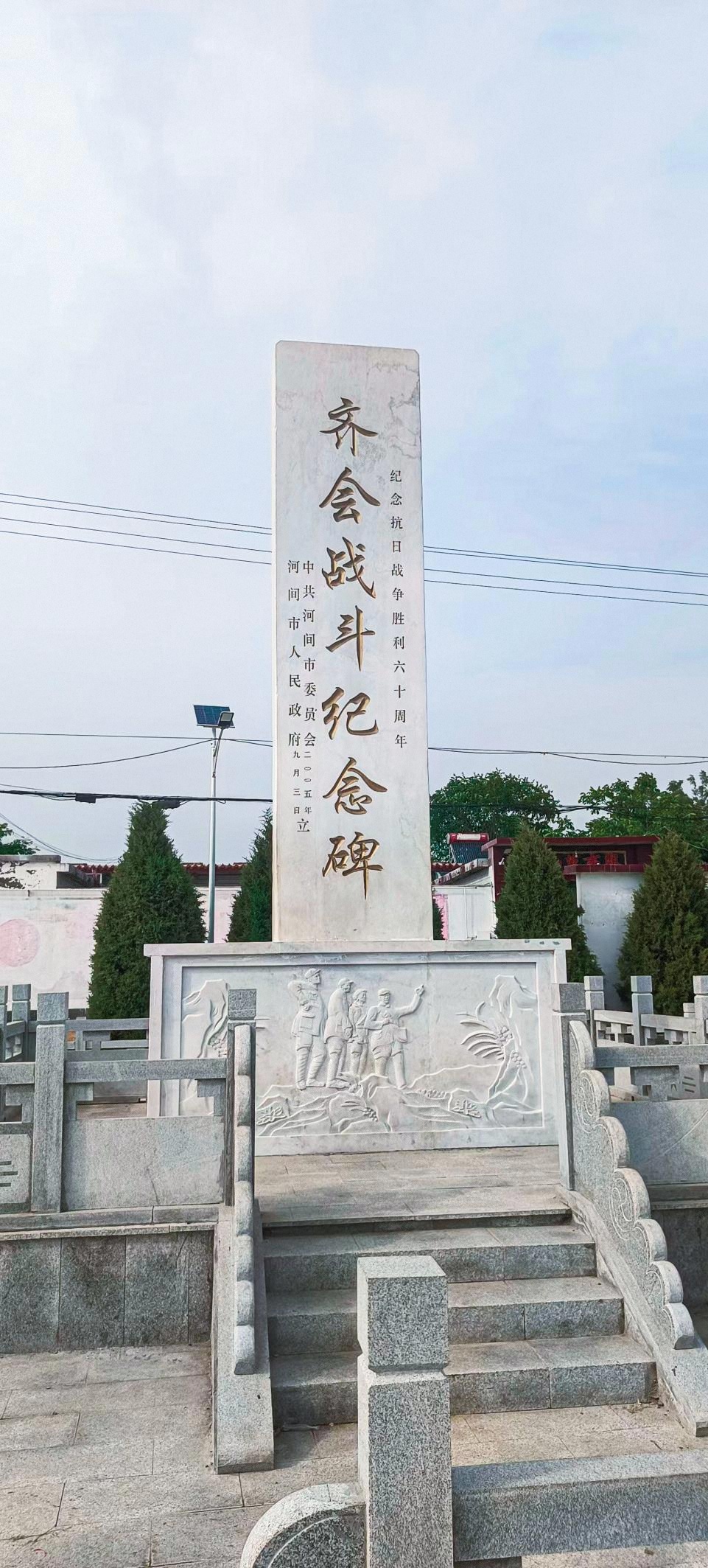 矗立在河北省河間市北石槽鄉(xiāng)齊會村中心廣場上的齊會戰(zhàn)斗紀(jì)念碑。(攝影/鄧長松)