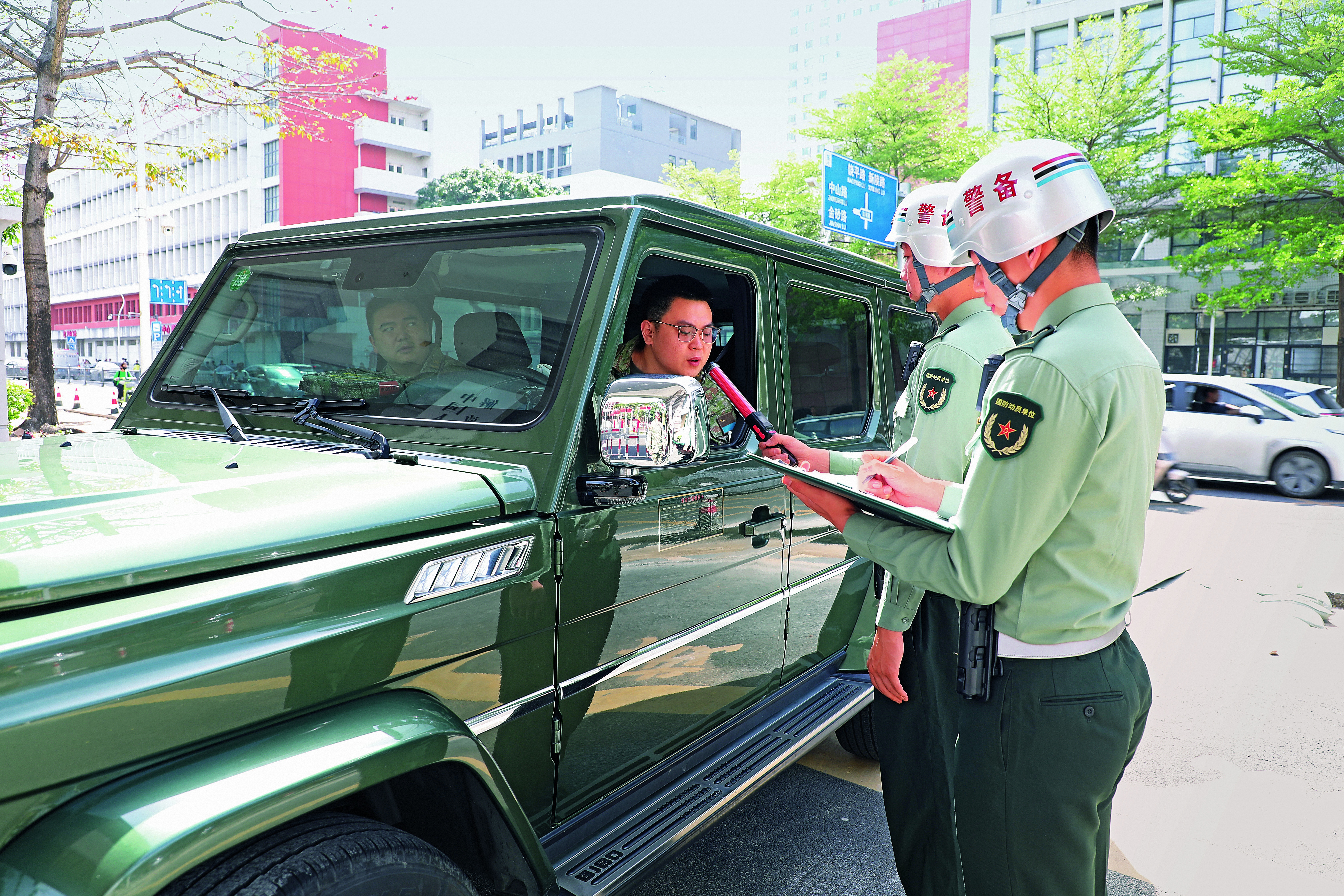 汕頭警備區(qū)組成糾察隊(duì)走上街頭對(duì)軍人軍車進(jìn)行專項(xiàng)糾察。(攝影/謝 會(huì))