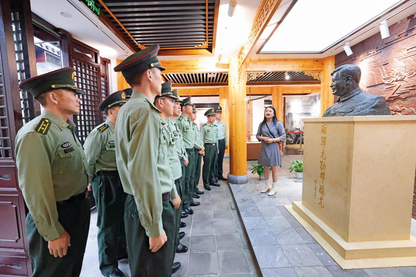 安慶市宜秀區(qū)人武部組織第三教育片區(qū)官兵和文職人員前往“鄧稼先故居”現(xiàn)地教學(xué)。(攝影/謝婷婷)