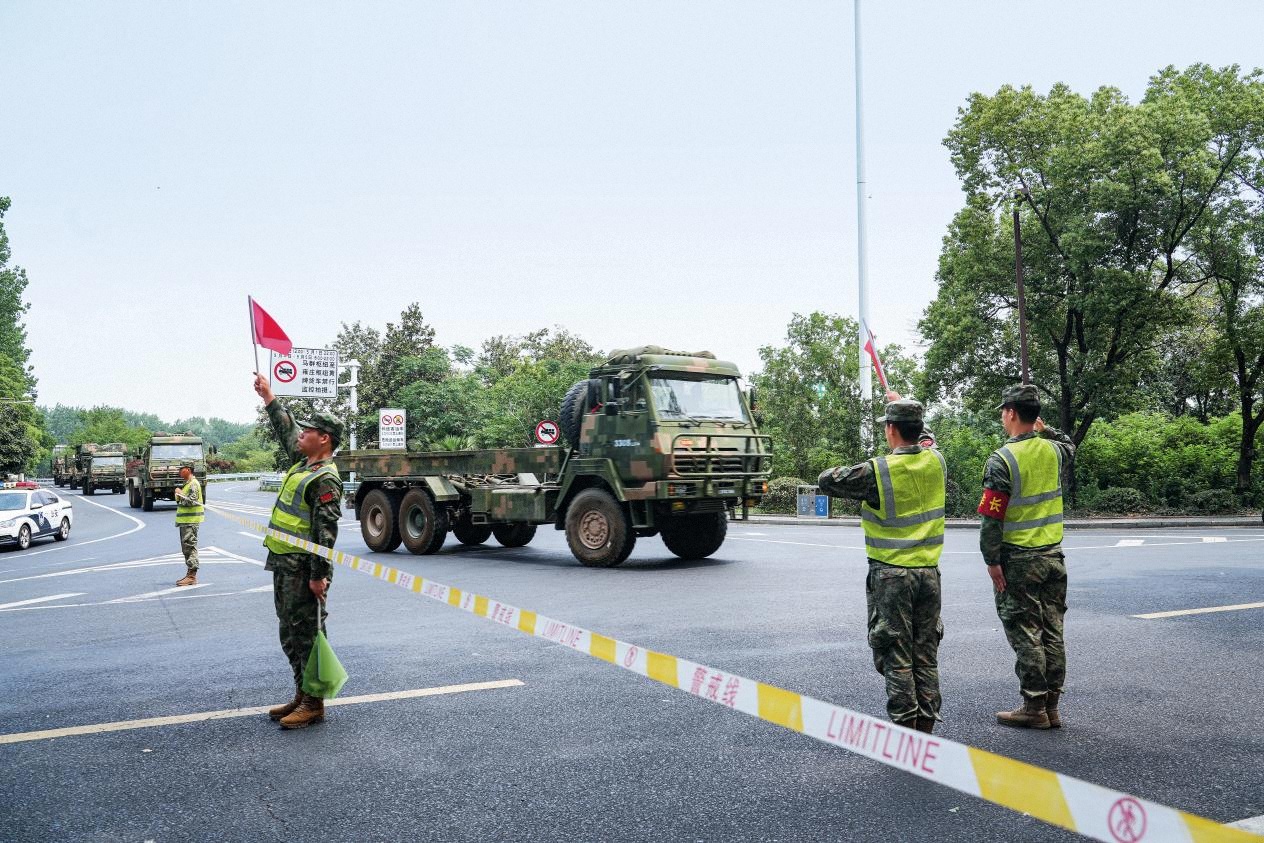 南京市棲霞區(qū)全力做好演訓(xùn)部隊過境保障工作。(攝影/馬澤宇)