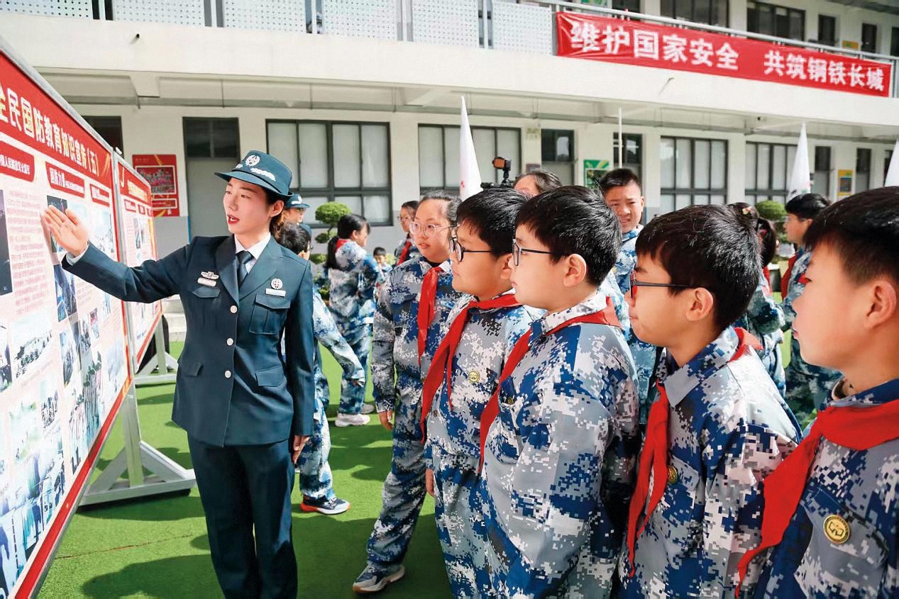 南京警備區(qū)組織所屬人員走進中小學(xué)校開展國防教育。(攝影/張永祥)
